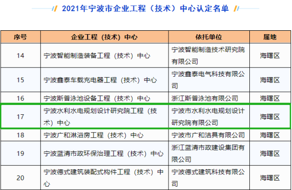 我院成功獲得2021年寧波市企業(yè)工程(技術(shù))中心認(rèn)定