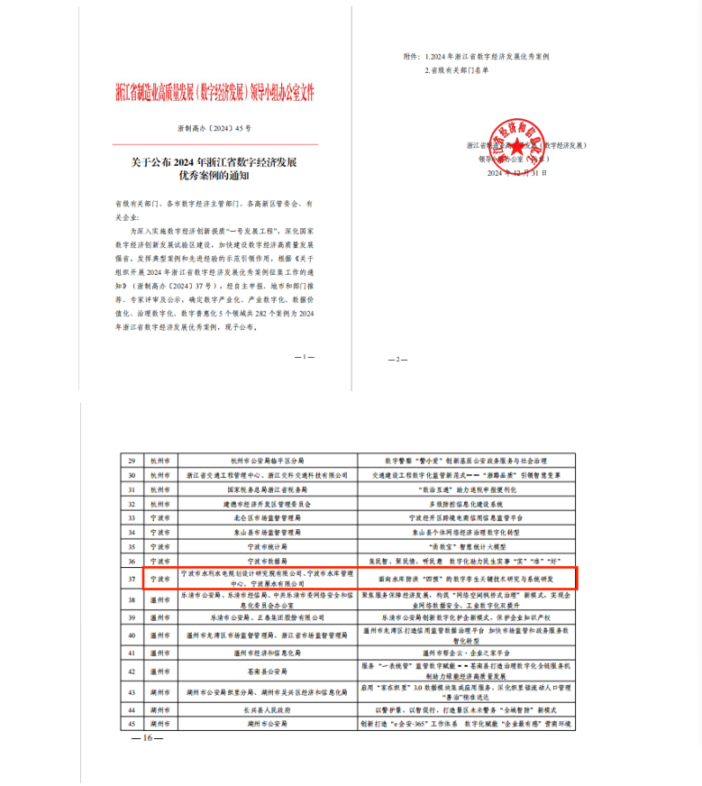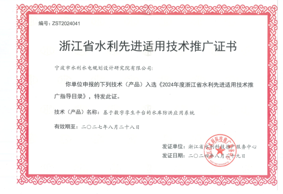 在產(chǎn)品創(chuàng)新方面,分別獲得第三屆寧波市專利創(chuàng)新大賽專利優(yōu)秀獎(jiǎng)、“寧波市優(yōu)秀軟件產(chǎn)品”稱號、2024年“數(shù)據(jù)要素x”大賽浙江分賽獲優(yōu)勝獎(jiǎng),入選2024年度浙江省水利先進(jìn)適用技術(shù)推廣指導(dǎo)目錄、2024年度寧波市優(yōu)質(zhì)產(chǎn)品推薦目錄和2024年浙江省數(shù)字經(jīng)濟(jì)發(fā)展優(yōu)秀案例近20項(xiàng)。