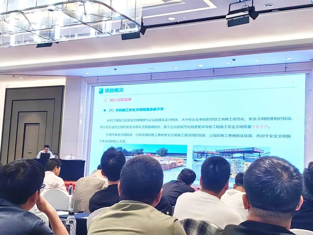 培訓(xùn)現(xiàn)場,我院高級工程師潘炳成圍繞水利高質(zhì)量發(fā)展和中國式現(xiàn)代化兩大任務(wù),對寧波市水利工程建設(shè)安全文明施工標(biāo)準(zhǔn)化技術(shù)要點進行宣貫。從水利工程項目建設(shè)安全文明施工的規(guī)范標(biāo)準(zhǔn)到安全防護措施,從有限空間作業(yè)的安全管理到事故防范相關(guān)標(biāo)準(zhǔn)化要求,潘炳成結(jié)合安全生產(chǎn)事故實例,對標(biāo)準(zhǔn)進行系統(tǒng)梳理和量化解讀,并重點突出了“安全即底線”的施工理念。