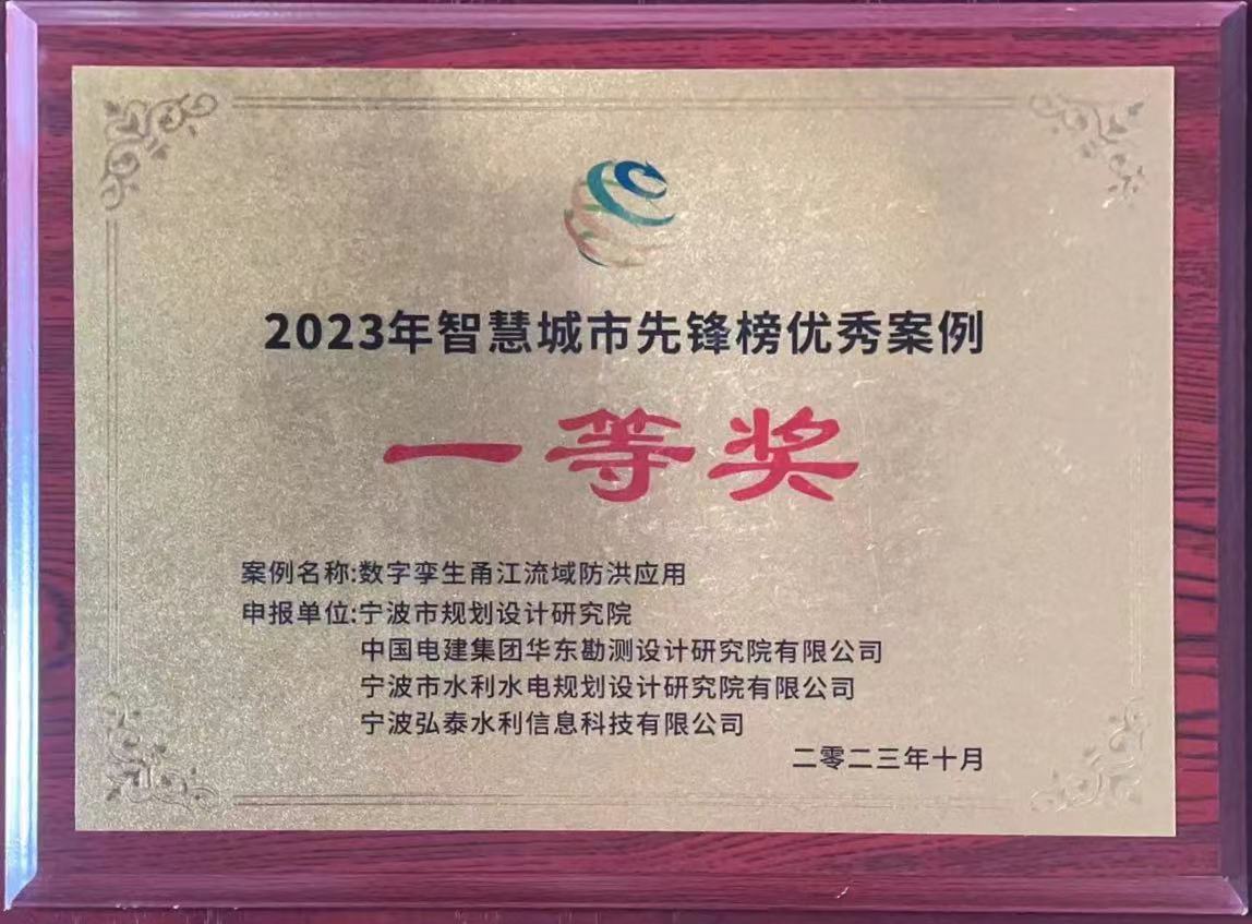 近日,我院與寧波市規(guī)劃設(shè)計研究院、華東勘測設(shè)計研究院有限公司、寧波弘泰水利信息科技有限公司共同承擔的“數(shù)字孿生甬江流域防洪應(yīng)用”項目作為寧波智慧城市創(chuàng)新應(yīng)用成果,精彩亮相“第十六屆中國智慧城市大會”,并榮獲2023智慧城市先鋒榜優(yōu)秀應(yīng)用案例一等獎,同時入選《中國智慧城市優(yōu)秀應(yīng)用案例集(2023)》,已由中國電力出版社出版發(fā)行。