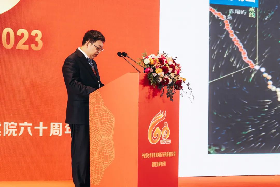 我院董事長、院長嚴(yán)文武首先向蒞臨60周年慶典的貴賓表示熱烈的歡迎,向六十年來關(guān)心支持和幫助寧波院發(fā)展的社會(huì)各界致以誠摯的感謝,向六十年來為寧波院改革發(fā)展灑下過辛勤汗水的全體員工和退休老同志致以崇高的敬意。嚴(yán)院長回顧了六十年來,我院改革發(fā)展的六大歷史性成就,他要求寧波院全體干部職工以習(xí)近平總書記十六字治水思路為指引,以寧波建設(shè)水利現(xiàn)代化先行市為契機(jī),強(qiáng)化自身建設(shè),承接光榮使命,應(yīng)對(duì)風(fēng)險(xiǎn)挑戰(zhàn),繼續(xù)走好寧波院發(fā)展新的長征路。短短十多分鐘致辭,不時(shí)引起現(xiàn)場寧波院職工的共鳴,激發(fā)起雷鳴般的掌聲。
