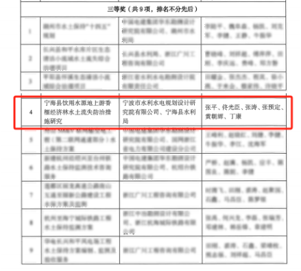近日,浙江省水土保持學(xué)會(huì)第三屆優(yōu)秀設(shè)計(jì)評(píng)選獲獎(jiǎng)名單出爐,15個(gè)獲獎(jiǎng)工程中,我院成功鎖定一席!此次我院受寧海縣水利局委托開展實(shí)施的寧??h飲用水源地上游香榧經(jīng)濟(jì)林水土流失防治措施研究榮獲三等獎(jiǎng)。該獎(jiǎng)項(xiàng)由浙江省水土保持學(xué)會(huì)設(shè)立,每?jī)赡暝u(píng)審一次,通過對(duì)水土保持規(guī)劃設(shè)計(jì)領(lǐng)域中取得優(yōu)異成績(jī)的集體和個(gè)人進(jìn)行表彰,從而推動(dòng)全省水土保持行業(yè)的發(fā)展。