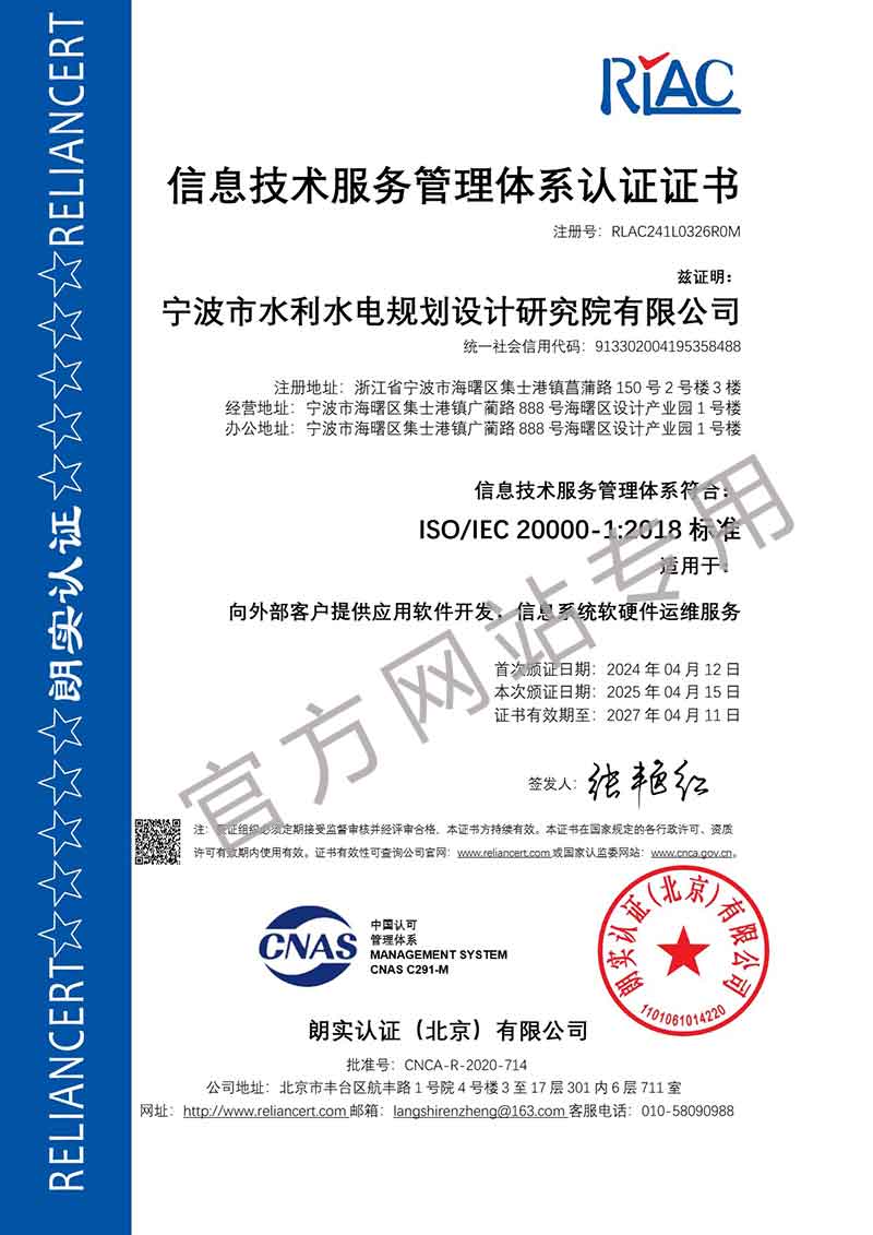 寧波院具有水利水電工程設(shè)計(jì)、工程勘察、工程咨詢、水土保持、水資源論證等多項(xiàng)資質(zhì)。承擔(dān)中小河流域規(guī)劃、水庫、河道整治、灘涂圍墾等工程的勘察、設(shè)計(jì)、咨詢、總承包業(yè)務(wù),以及各領(lǐng)域建設(shè)項(xiàng)目的防洪評(píng)價(jià)、水資源論證、水土保持方案編制、水土保持監(jiān)測(cè)、計(jì)算機(jī)行業(yè)CMMI 3級(jí)認(rèn)證、知識(shí)產(chǎn)權(quán)管理體系認(rèn)證等。